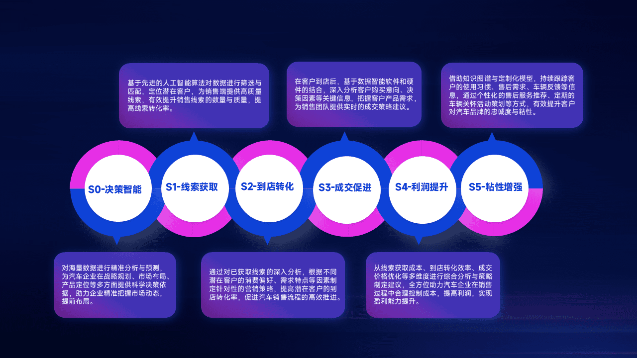 通过拓宽潜在客户来源、、、优化线索分配并提高到店转化率,,,,以增强销售效率。。。同时,,,利用线索数据不断优化分析模型,,,,有效提升转化率,,,扩大营销影响力。。
